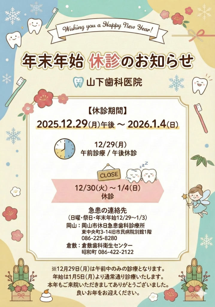 ◆受診時間:午前 8:30 – 12:30 午後 14:00 – 17:00 ※土曜日は13:30まで ◆休診日:水曜・日曜・祝日 ◆ご予約・お問い合わせ:086-282-6480